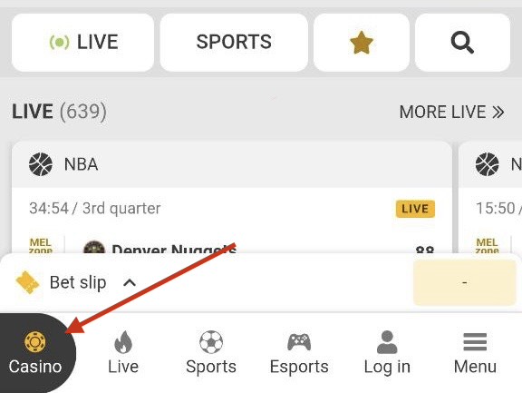 Pastikan kamu sudah masuk ke menu Kasino. Kalau belum, ketuk seperti di foto.